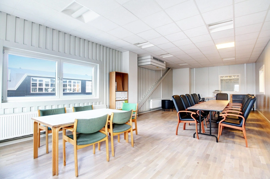 Kontorområdet er på 120 kvm, og er velegnet til åbent kontorområde eller et mødelokale. Der er samtidig gulvvarme i kontorområdet.