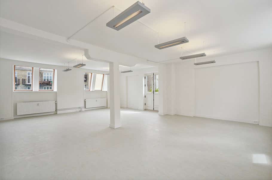 Særdeles lyst og helt nyistandsat kontor/ klinik på 162 m². Lejemålet ligger virkelig dejligt øverst i ejendommen og har dermed et rigtig godt lys og skøn udsigt til gårdmiljøet.