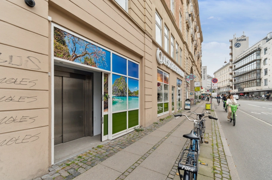 Jysk Rejsebureau har butik over lagerlokalet samt retten til at opsætte folie på hele facaden inkl. dørene på vareelevatoren.