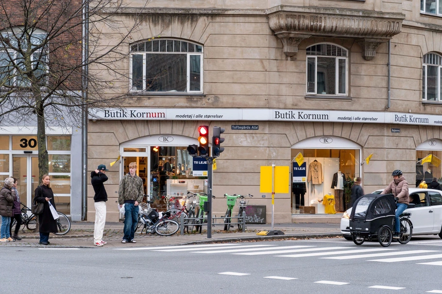 Beliggende på hjørnet af Toftegårds Alle og Rughavevej har lejemålet en fremtrædende placering, der med sine 4 markante butiksvinduer giver lejemålet høj synlighed.