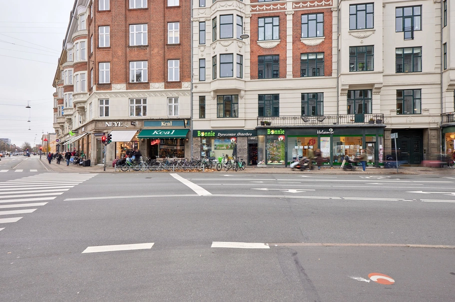 Lejemålet på Østerbrogade 33 ligger i en smuk ejendom fra 1909. Østerbro er et af de mest eftertragtede kvarterer i København, kendt for sine butikker, caféer og shoppingmuligheder, som kombineres med attraktive boliger og en charmerende bydel med åbne pladser og grønne områder. Området rummer kendte brands som Ganni, Maanesten og herretøjsbutikken Goods.