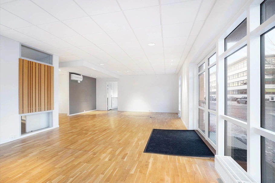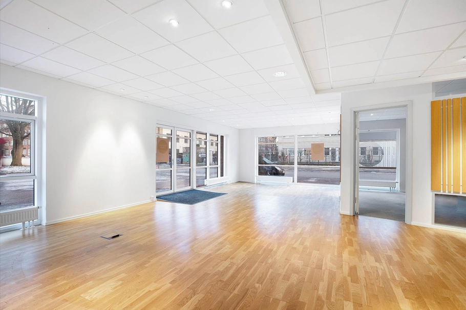 Mulighederne er mange med et erhvervslejemål, der skriver adresse på Indertoften 1, ST, hvor AudioNova tidligere lå og havde hørecenter. Her er du sikret, at forbipasserende får øje på lige netop din virksomhed, da det placerer sig på en god hjørnegrund, hvilket fremmer synligheden. Lejemålet er tilmed beklædt med store vinduespartier mod gaden, og det får flere betydninger for dig – men størst betydning får det, at lysindfaldet er rart og autentisk. Dette erhvervslejemål har to indgange, hvoraf de dobbelte glasdøre mod gaden åbner ind til det store butikslokale. Her mødes du og dine kunder af et indbydende syn med pæne parketgulve samt hvide vægge og lofter. Der er god plads i butikslokalet til at indrette med en disk, hvor diverse betalinger eller sælger til kunde-samtaler kan foregå. Videre fremme kan du se frem til to store og lyse kontorer vendt mod syd, så eftermiddagssolen får lov til at strømme ind og give liv til rummene. For enden af gangen får du adgang til et teknikrum samt et toilet, der tilmed er handicapvenligt. Resten af lejemålet består af et stort lokale med egen indgang, og her er der mulighed for at træde direkte fra lokalet og videre ind i selve butikken. Lejemålet ligger godt placeret i en god og veldrevet ejerforening.
