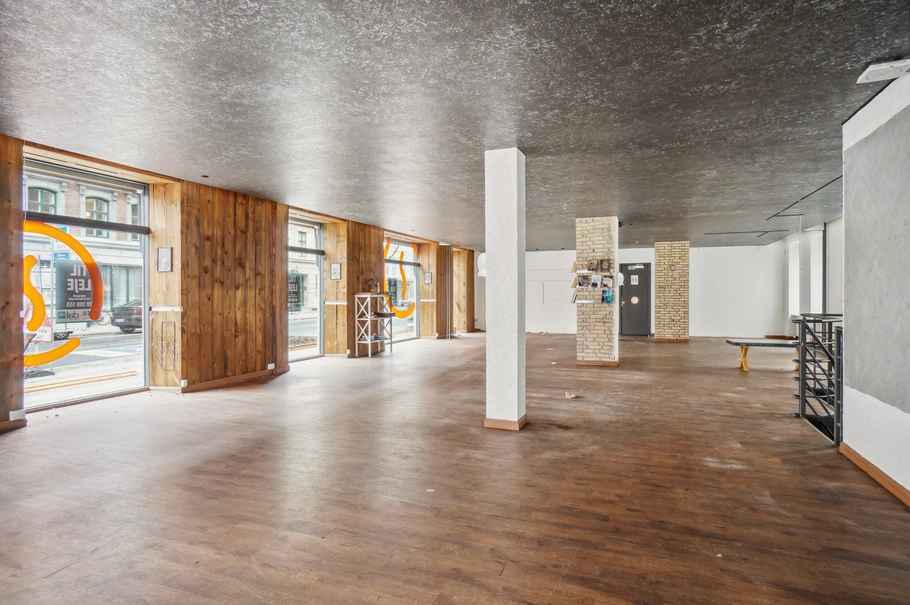 Stort åbent layout med indgang på hjørnet af Nordre Frihavnsgade og Strandboulevarden. Fra indgangen træder man direkte ind i det store lokale, som har 5 stk. vinduer til Nordre Frihavnsgade og 1 stk. vindue til Strandboulevarden. Der er fire søjler i lokalet, men planløsningen er ellers meget fleksibel. Desuden et toilet bagerst.