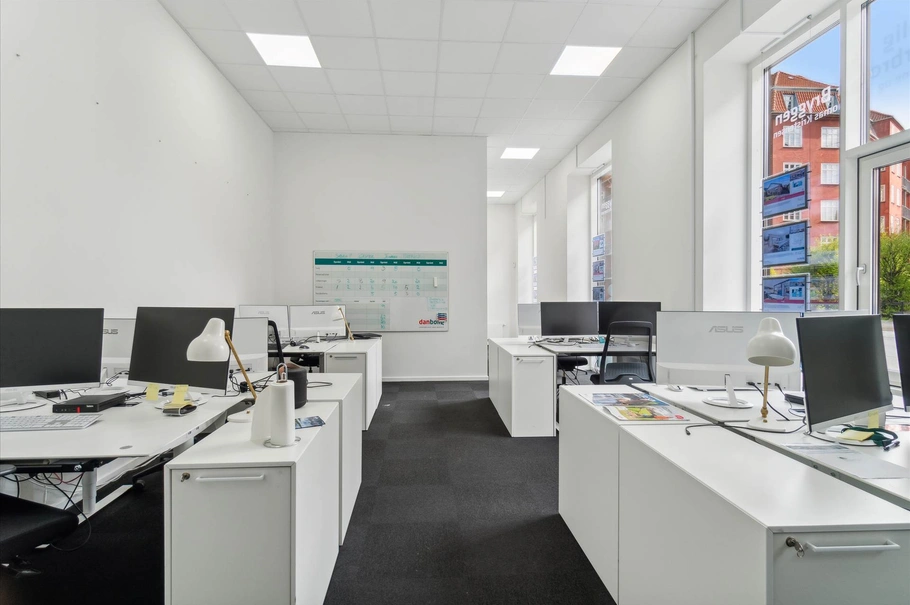 Lejemål strækker sig over 91 m², og ved indgangen mødes du af et badeværelse og et flot køkken. Indenfor venter et stort og indbydende butiks/kontorlokale, der giver masser af plads til at udfolde din forretning og præsentere dine produkter eller tjenester. Et pænt mødelokale, der giver mulighed for at imponere potentielle kunder eller samarbejdspartnere, mens et mindre arkiv giver plads til opbevaring af vigtige dokumenter og materialer.