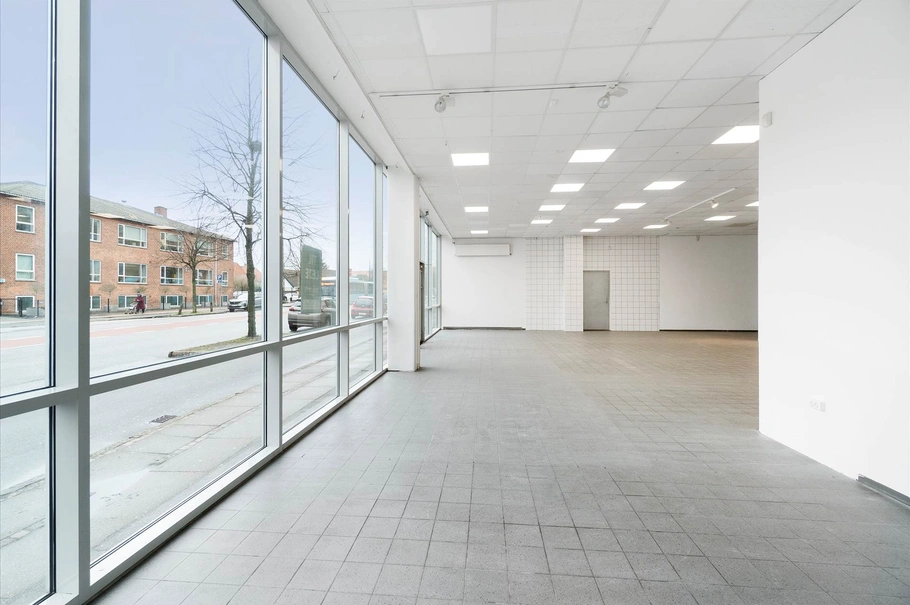 Lejemålet fremstår med store gadevendte gulv-til-lofts vinduespartier, der sikrer rigeligt naturligt lysindfald og bidrager til en indbydende atmosfære i butikken. Lokalet er udstyret med både skinnespots og indbygget loftslys.