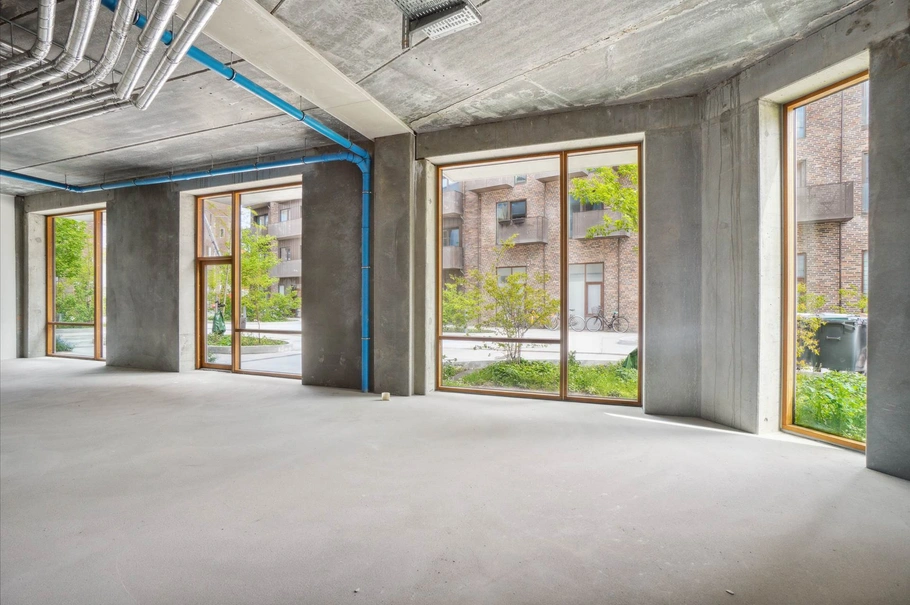 Højloftet og yderst regulært lejemål - lige overfor KUA. Store vinduespartier ud mod travle Njalsgade.