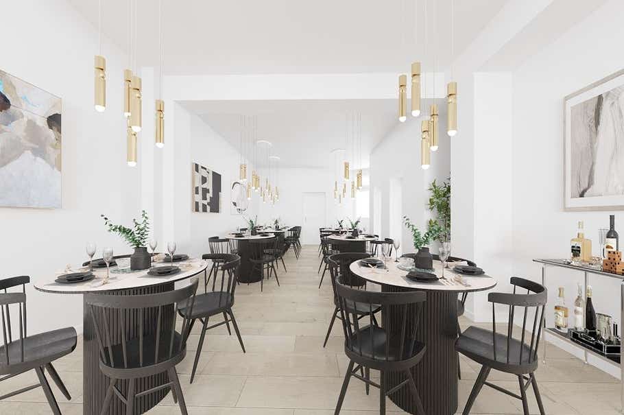 Den primære del af lejemålet er indrettet med ét stort og rummeligt restaurantlokale. Derudover indeholder lejemålet 2 kundetoiletter, personaletoilet, køkken forberedt med installationer til ny lejers opsætning af køkken samt højloftet kælder - oplagt til ekstra køle-/ fryseplads, vin mv.
