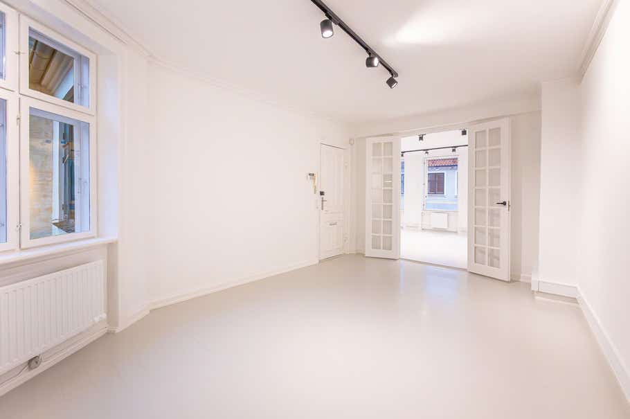 Kontorlejemålene kan lejes særskilt eller samlet, og er beliggende på 3. og 4. sal i en flot og mondæn ejendom, der er ejet af familien Nørgaard på Strøget. Når man træder ind i opgangen direkte fra Strøget, kan man med det samme fornemme, at der er kælet for detaljerne og ikke overladt noget til tilfældighederne. Kontorlejemålene er alle nyistandsat og malet af udlejer inden indflytning, således at lejerne kan ibrugtage lokalerne straks.