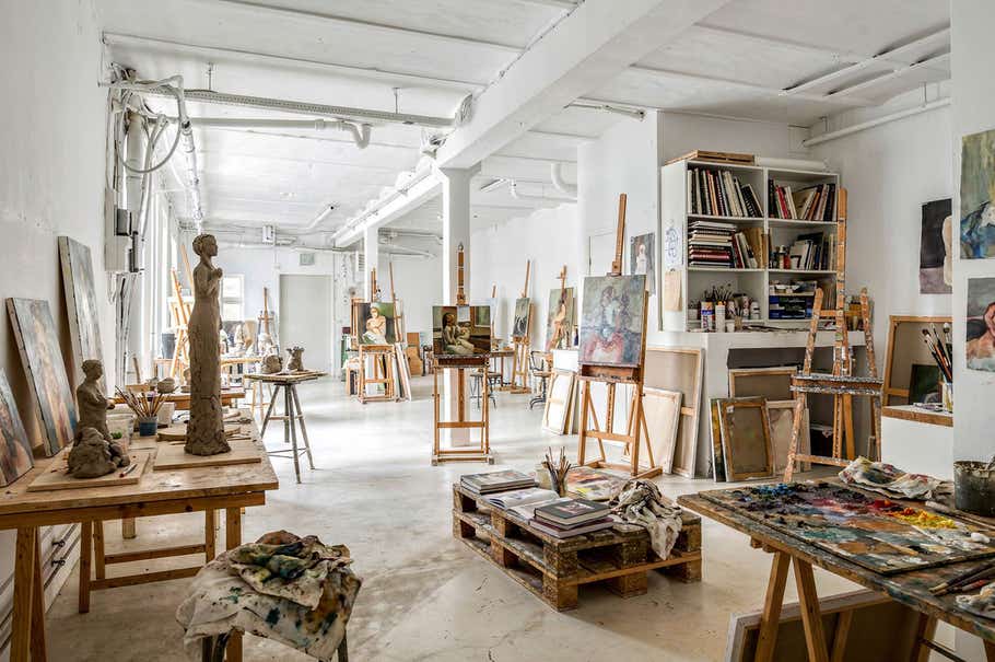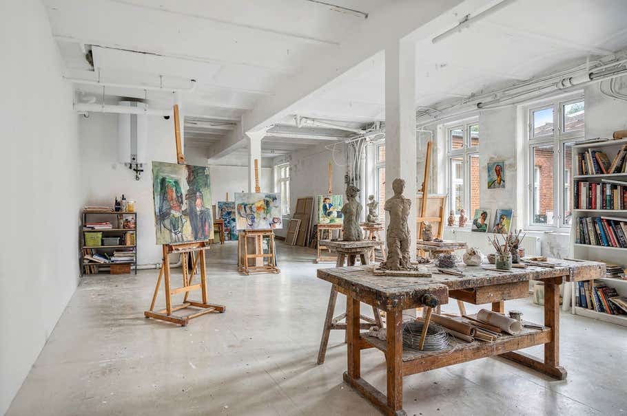 Charmerende kreativt værksted/ showroom med 3,2 meter til loftet. Virkelig skønt og lyst lokale med bredt indgangsparti via dobbeltdøre og niveau fri adgang.