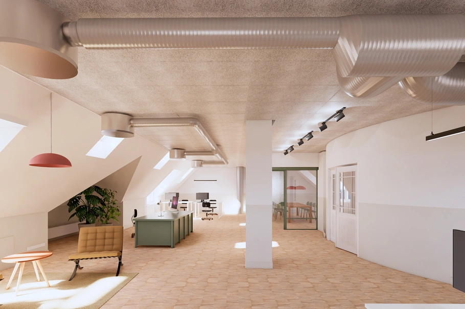 - Åbent kontormiljø med enkelte mødelokaler og kontorer