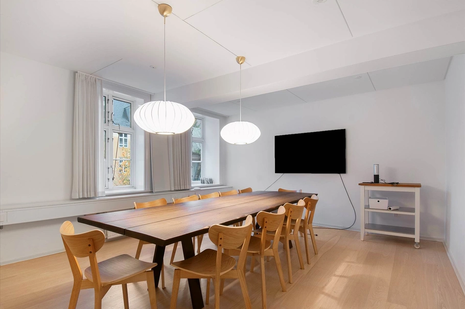 Ejendommen ligger centralt i København på Strædet, der er kendt for sine mange hyggelige caféer og spisesteder – dem er man dog ikke generet af her, da lejemålet ligger ud til en rolig gård.