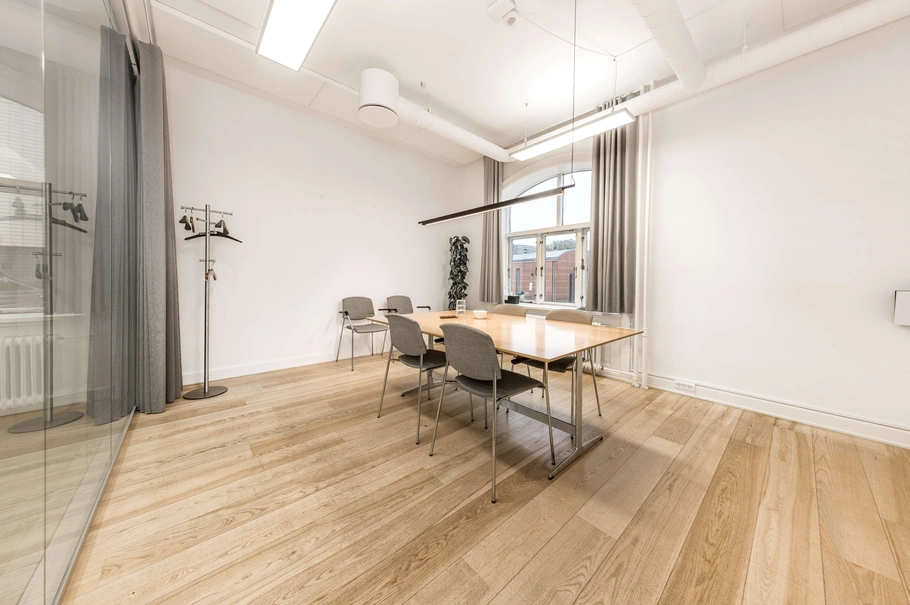 Ejendommen tilbyder en unik domicilmulighed med markant synlighed og eksponering og byder på både herskabelige detaljer, fritlagte bjælker, åbne kontorområder og mødelokaler i varierende størrelser.