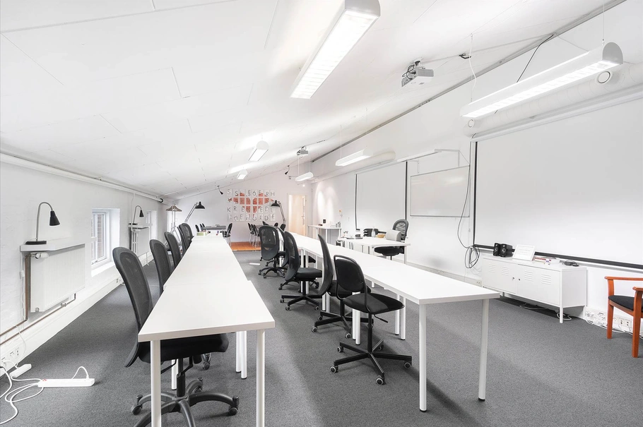 Nu udlejes pænt erhvervslejemål med en god blanding mellem storrumskontor og mindre kontorer. Ny metrostation 100 meter fra døren åbner til sommer.