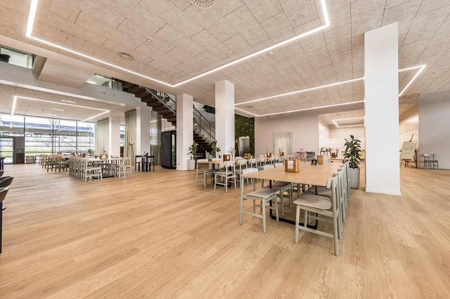 - Fælles kantine, mødelokaler, tagterrasser mv.