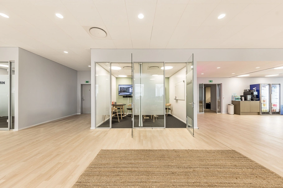 Ejendommen er i syv etager, og alle kontoretager fremstår indflytningsklare med flotte, lyse trægulve, mødelokaler i glas og med nyistandsatte tekøkkener og toiletter. Tekøkkenerne er snedkerlavede i træ med stålbordplade, og toiletterne fremstår moderne med flotte, grønne nuancer.