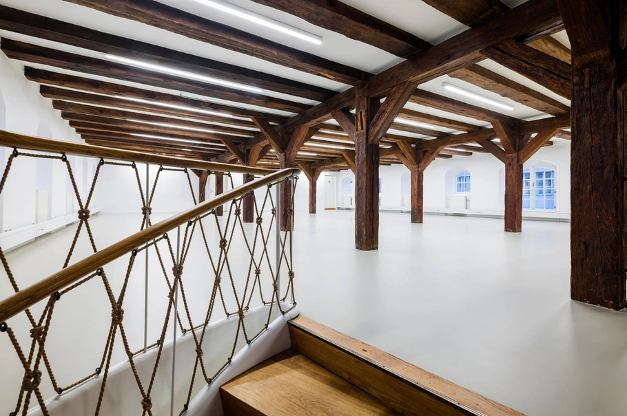 - Fritlagte bjælker og buede vinduer