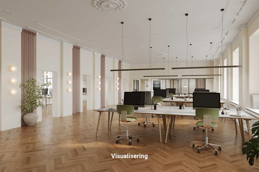 Nyistandsat kontorlejemål med adgang til fælles kantine