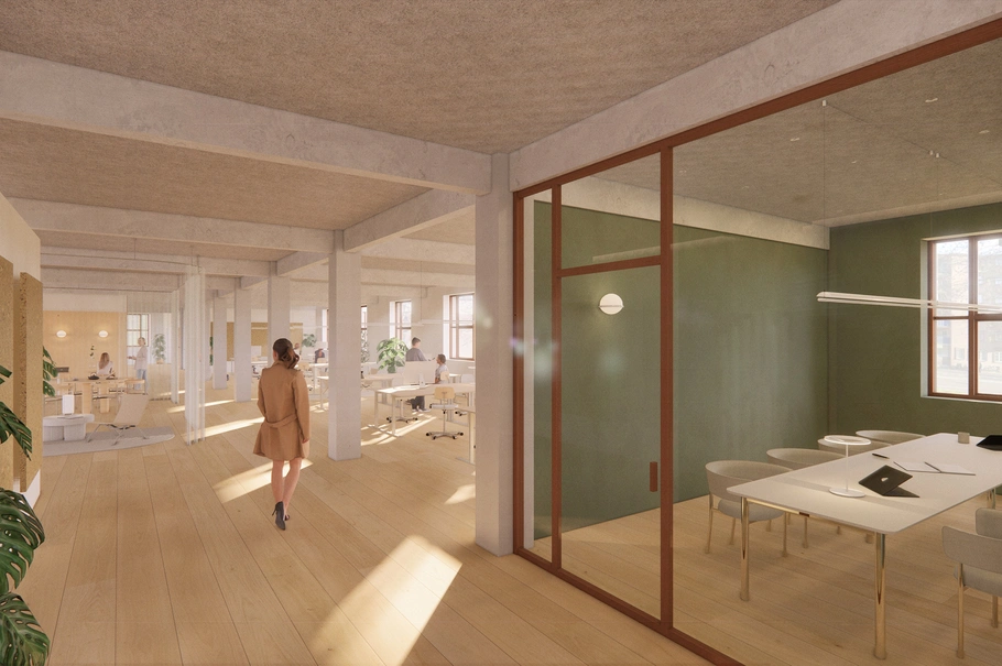 Arbejdspladserne er placeret mod vinduerne, mens der i kernen er tiltænkt møderum, samt diverse lounge miljøer.