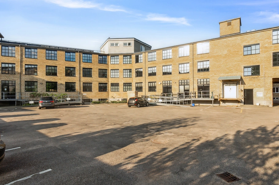 Kontoret er gennemlyst og indbydende, da der strømmer masser af dagslys ind fra de flotte store industrielle vinduespartier. Kontorarealet er meget funktionelt og kan nemt indrettes.