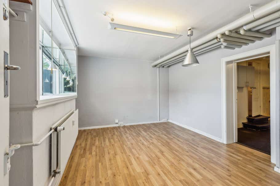 Lejemålet i højre side har et stort facadevindue med godt lysindfald og består af et forlokale med et mindre 'udstillingsrum', og 2 baglokaler, som er adskilt af en gipsvæg, hvoraf der er vask og adgang til toilet i det ene af lokalerne.