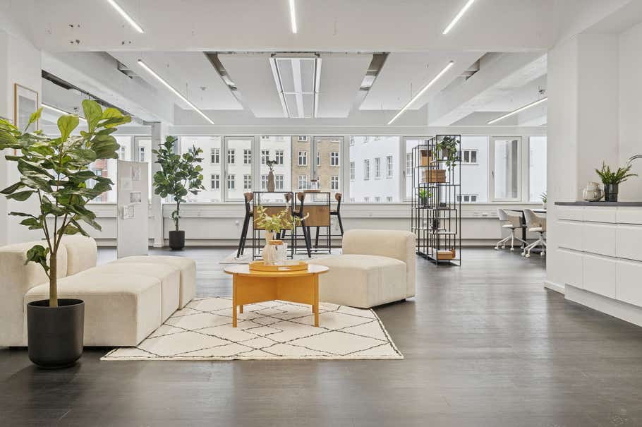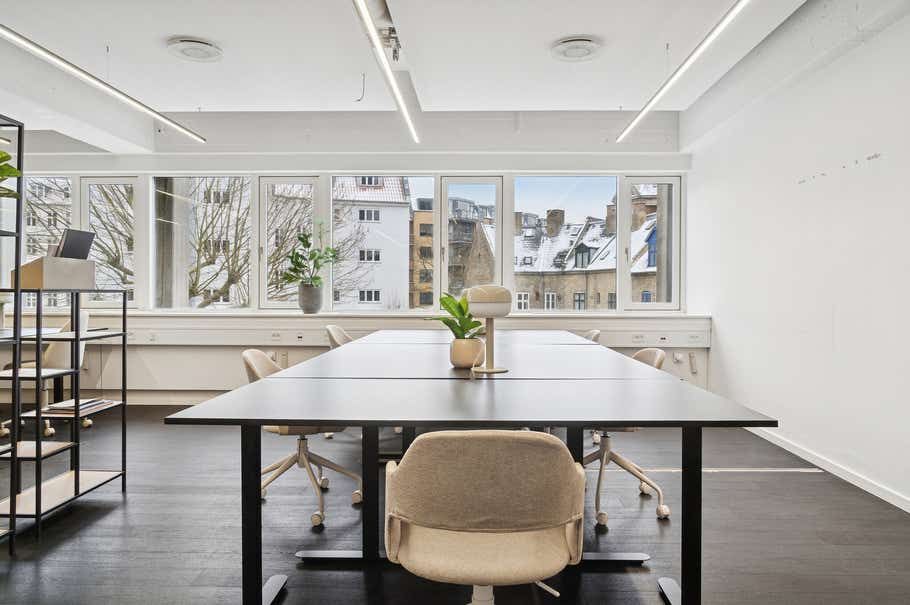 Her kan du få plads til mange arbejdspladser, og indretningen gør at det er let er bevæge sig rundt mellem de forskellige afdelinger uden at man forstyrrer.