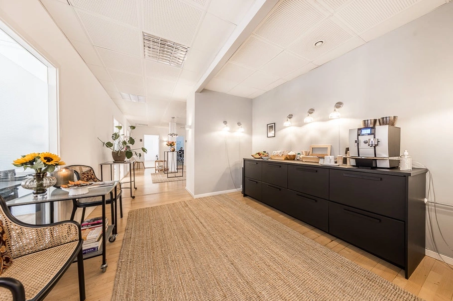 Lejemålet på 301 m² er indrettet med kontorer i varierende størrelser, køkken med god plads til spiseområde og lækkert loungeområde med kaffestation.