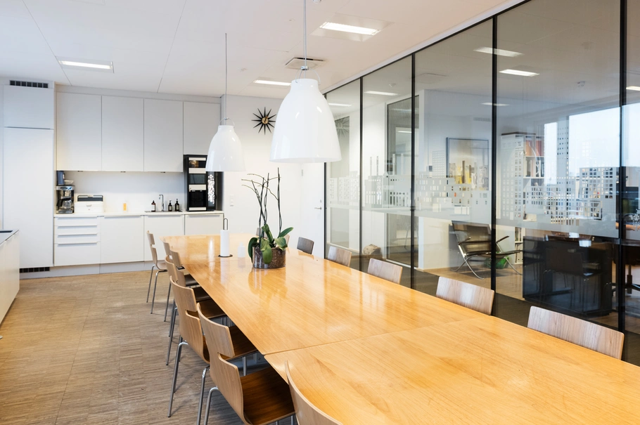Lejemålet på 3. sal er i dag indrettet med store, åbne kontormiljøer, mødelokale, loungeområde samt et flot, aflukket tekøkken med tilhørende spiseplads. Desuden tre toiletter. Lejemålet på 4. sal er indrettet med både storrumskontor og flere mindre cellekontorer, mødelokaler, et lyst tekøkken med aflukket spiseområde og ligeledes tre toiletter.
