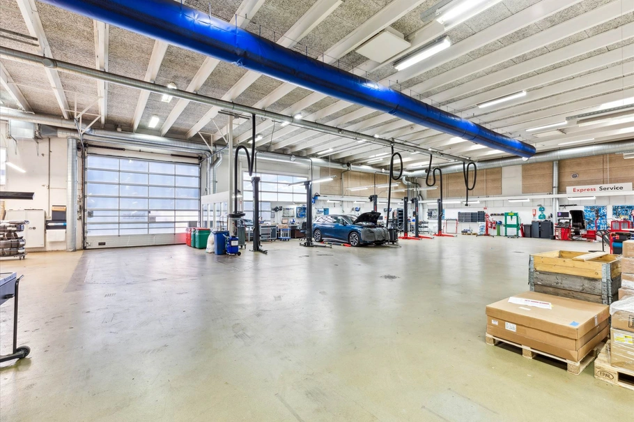 Banevingen 12 er særligt velegnet til at drive værksted med lager- og produktionsformål. Lejemålet er udstyret med hele tre porte, som giver nem adgang for køretøjer af forskellige størrelser, samt en loftshøjde på 5,73 meter, hvilket skaber optimale forhold for både varerindlevering og servicearbejde. Med flere lifte til rådighed er der mulighed for effektiv håndtering af flere biler samtidig, hvilket gør arbejdsprocesserne smidige og tidsbesparende. Værkstedet har desuden køkkenfaciliteter og flere toiletter, så de daglige behov hos medarbejderne kan dækkes. Udenomsarealet er befæstet og rummer parkeringspladser, hvilket sikrer god tilgængelighed og gør det nemt for kunderne at aflevere og afhente deres køretøjer.