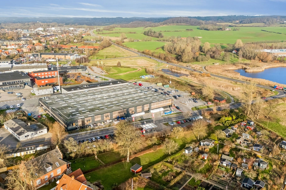Ejendommen har gode parkeringsforhold og er beliggende i et roligt, men velbesøgt erhvervsområde med kendte naboer som JYSK, Jem & Fix, Harald Nyborg og thansen.
