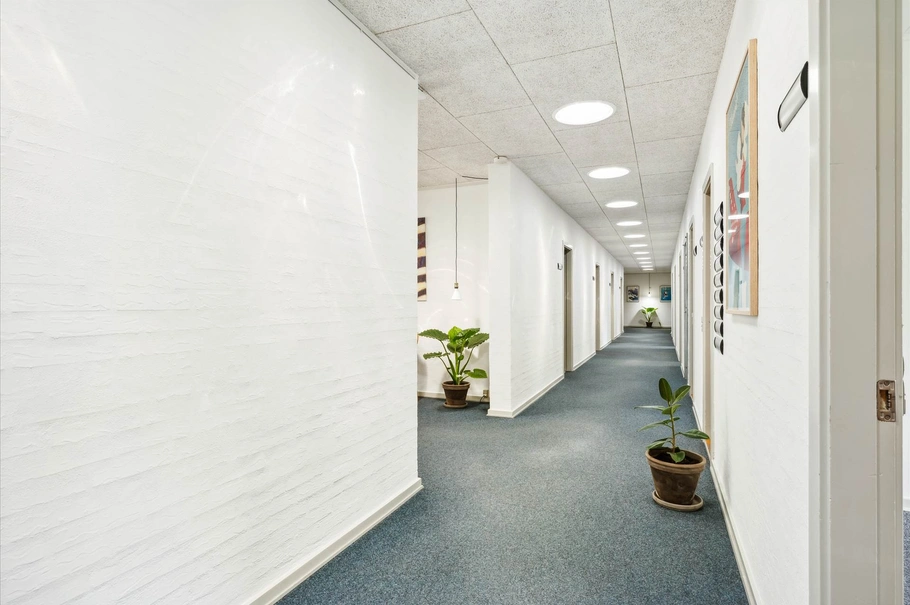 Ejendommen er velegnet til både større og mindre virksomheder. Her har du mulighed for at leje kontorlokaler i varierende størrelser og dermed blive en del af et kontorfællesskab, med brugsret til fælles mødelokale, køkken/frokoststue, printer samt toiletter.