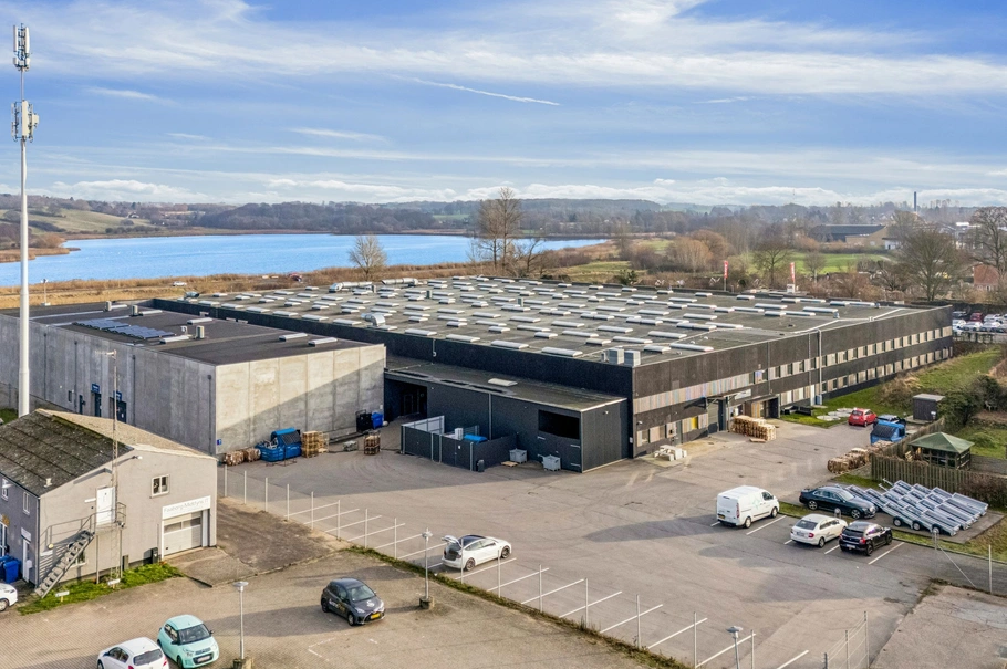 Kontordelen udgør 426 m² og kan lejes separat til kr. 325 pr. m². Her får du et veldisponeret kontormiljø på 1. sal med reception, seks separate kontorer, flere mødelokaler, frokoststue, køkken samt adgang til en overdækket terrasse.