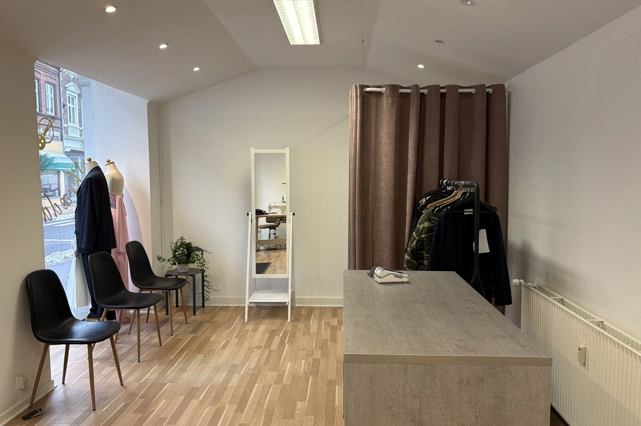 Lejemålet har senest været anvendt til skrædder, men kan nemt omdannes til butik eller som kontor for liberalt erhverv.