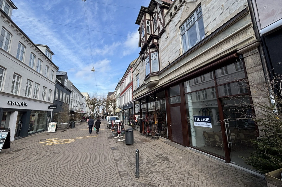 Midt i Odenses gågademiljø udlejes et butikslejemål med en fremtrædendeglasfacade, der giver optimal synlighed for de mangeforbipasserende.