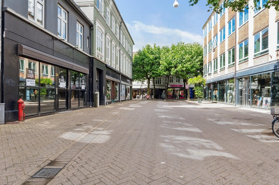 Lejemålet er med stor facade mod Slotsgade og indeholder stort regulært butikslokale med store vinduer mod Slotsgade.