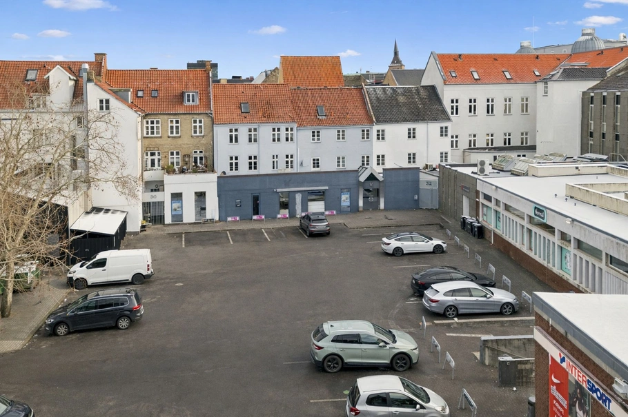 Foruden adgang fra Kongensgade, har lejemålet også et pænt og præsentabelt indgangsparti ud til Kongestien med mange parkeringspladser, hvor det er muligt at leje op til 5 p-pladser lige ved døren, som giver muligheden for at tilbyde kundeparkering.