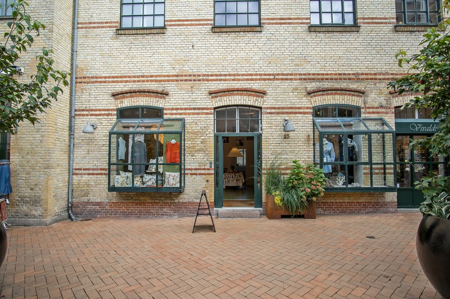 Selve lejemålet entreres via præsentabelt indgangsparti til regulært og højloftet salgsareal. Gulvbelægning af træ mens væggene er hvide og fuldmurede. De karakteristiske sprossede vinduespartier giver et charmerende udtryk med mulighed for eksponering mod gadeplan. Den gode loftshøjde giver en fantastisk rumfornemmelse med masser af mulighed for vareeksponering.