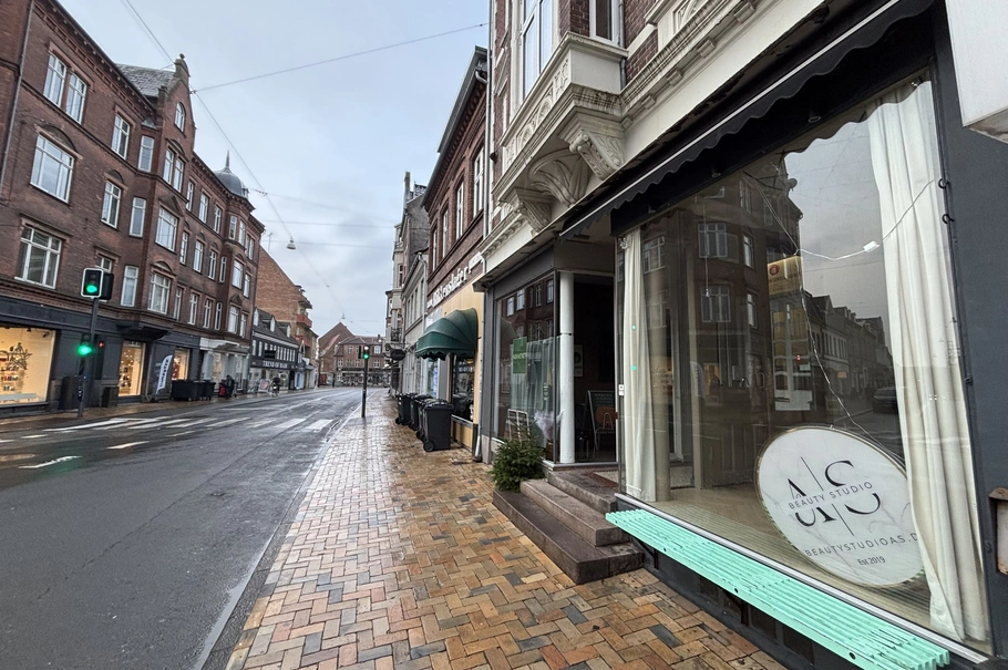 Lejemålet er flot indrettet med sildebensgulv, højt til loftet og en stor facade mod befærdet kryds. Lejemålet kan anvendes til butik, kaffebar eller noget helt tredje. Foruden det lyse salgsareal er der også baglokale samt kælder til opbevaring.