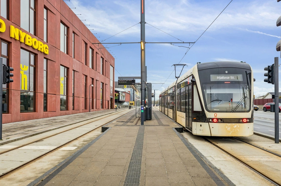 Ejendommen er beliggende lige ved p-pladsen og hovedindgangen til Tarup Center, som er et moderne og meget populært butikscenter med 44 butikker, 5 spisesteder og 1 supermarked. Centeret råder over ca. 600 p-pladser inkl. ladestandere.