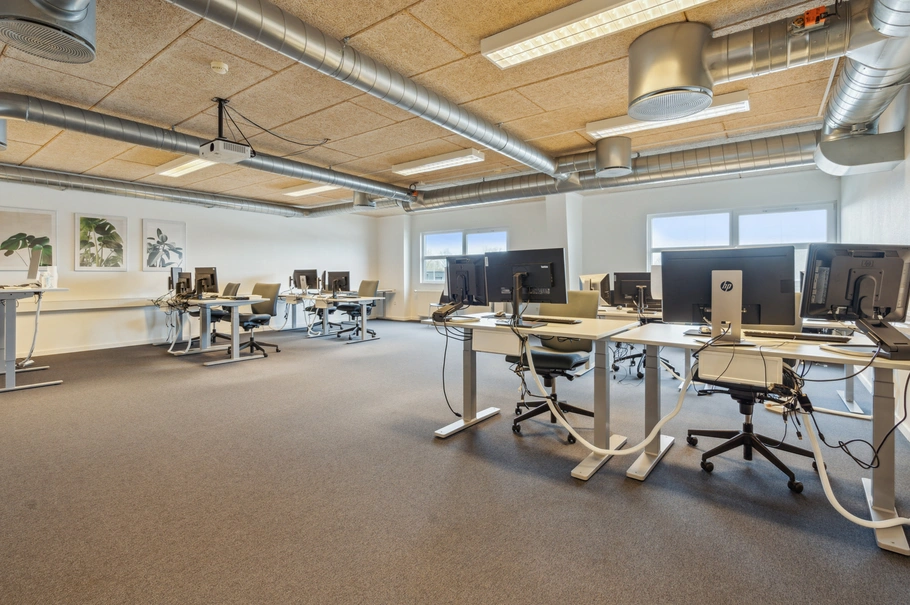 Lejemålets planløsning er fleksibel og indretningsvenlig, og kan tilpasses afhængig af lejers behov. Lyset fra de store vinduespartier, skaber sammen med lejemålets lyse overflader rammerne for et indbydende kontormiljø.