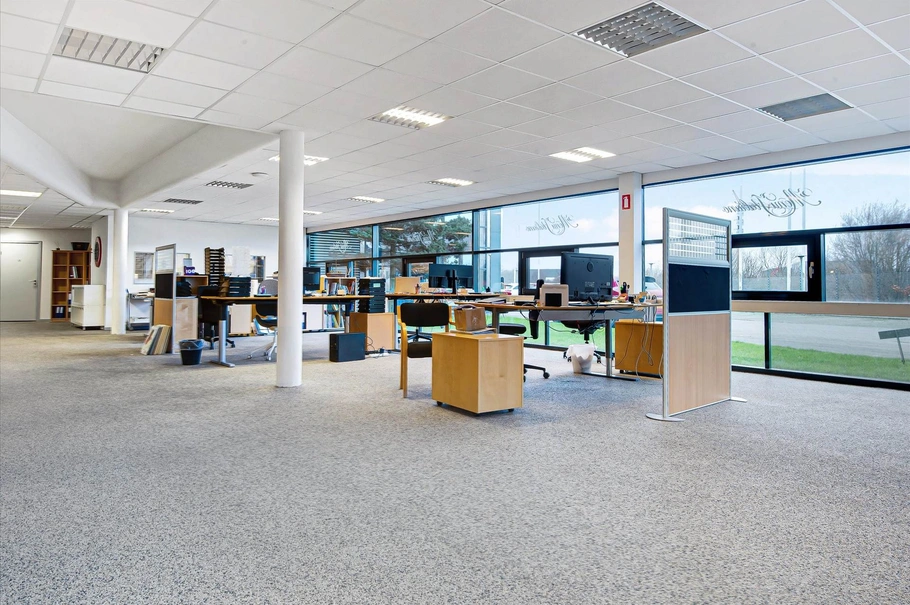 • Stort kontormiljø, 3 mødelokaler, frokoststue, toilet og bad