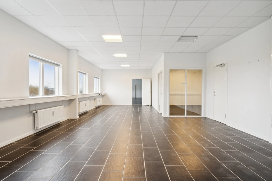 Planløsningen er rummelig og fleksibel, og passer til mange typer virksomheders behov.