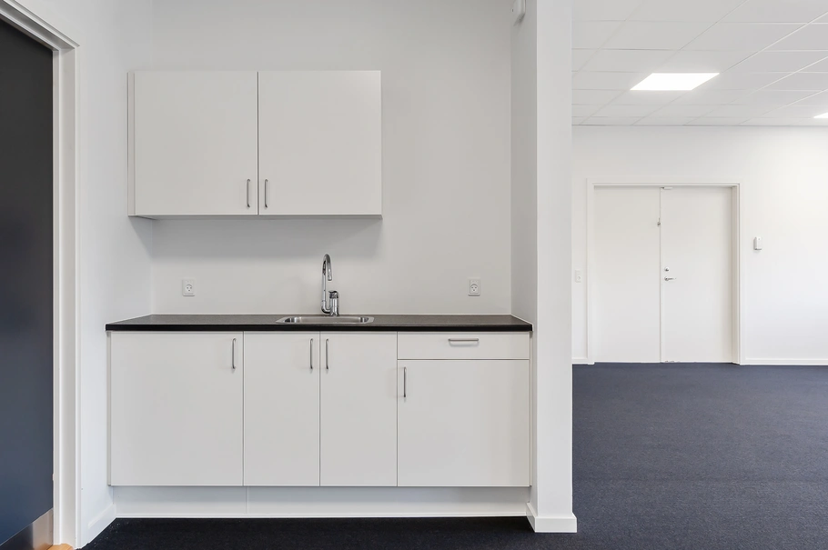Hvert kontor er indrettet med et kontor og mødelokale. Derudover er der et mindre tekøkken og et toilet. Lejemålet entreres via et præsentabelt indgangsparti med højt til loftet og store vinduespartier.