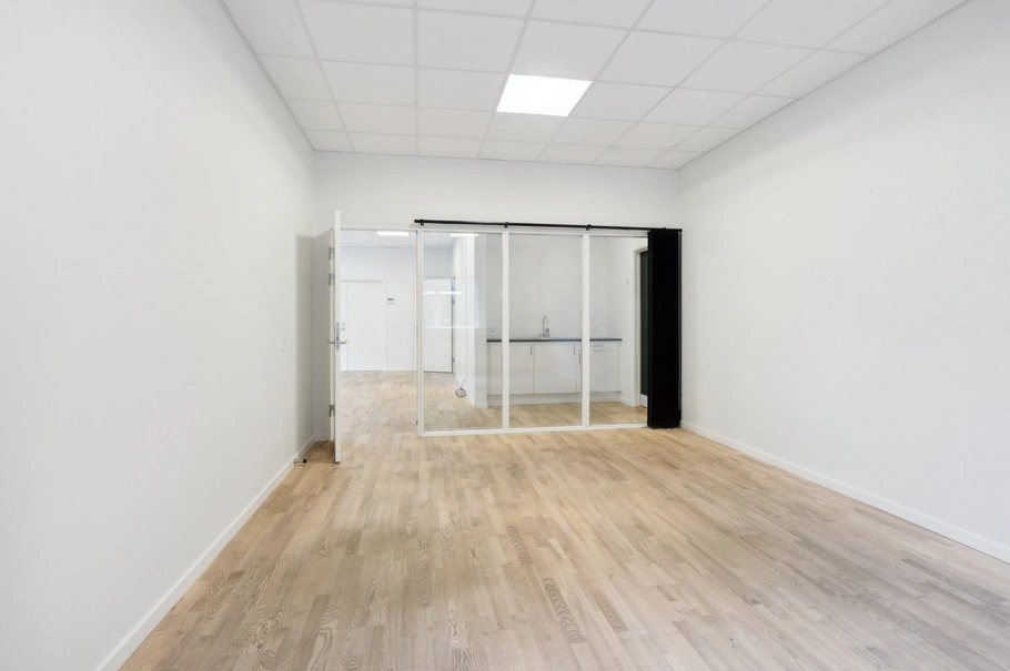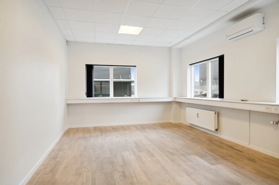 Lejemålet består af et åbent kontorrum med to særskilte kontorer/mødelokaler. Derudover er der et mindre tekøkken og et toilet. Desuden er lejemålet et hjørnelejemål, hvorfor man har glæde af vinduespartier på to sider.