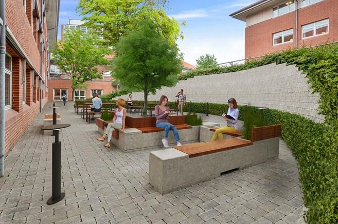 Der ligger tre store uddannelsesinstitutioner i området, nemlig Tietgen, VUC & HF Fyn og Erhvervsakademiet Lillebælt. Lige midt imellem de tre uddannelsesinstitutioner ligger Storms Pakhus, som er et streetfood marked indrettet i et gammelt