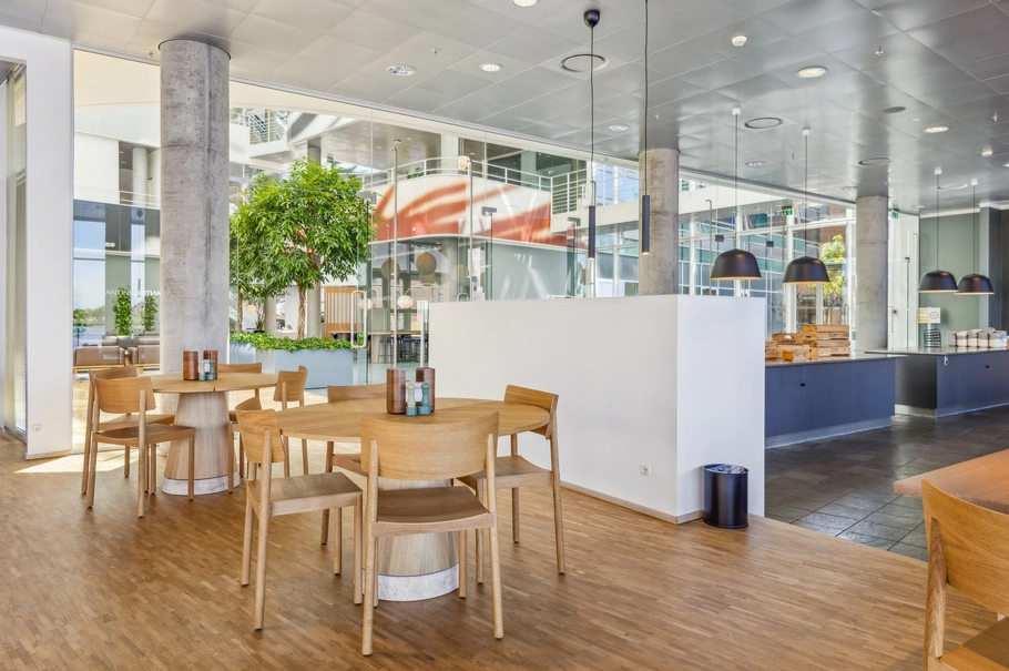Havnefronten er et eksklusivt fællesdomicil, der efter en gennemgribende renovering fremstår som et fællesdomicil af højeste standard ved havnen i Odense.Den imponerende arkitektur, oprindelig tegnet af Henning Larsen, kombinerer kvalitetsbyggeri med moderne faciliteter, hvor indretning og materialevalg er af høj kvalitet. Ejendommens ligger blot et stenkast fra banegården og indretningen byder på fleksible kontorer og mødelokaler i forskellige størrelser, der kan tilpasses kommende lejers behov.De eksklusive fællesfaciliteter omfatter blandt andet en moderne kantine med panoramaudsigt over Odense Kanal, bemandet reception og eget servicecenter, konferencesal og mødefaciliteter med kapacitet fra 6-60 personer og alt i konferenceudstyr, fitness- og badefaciliteter samt egen parkeringskælder med adgang til el-ladestandere og gæsteparkering lige uden for.Ejendommen Havnefronten entreres via fælles reception med flot arkitektonisk trappetårn, hvor det imponerende ankomstområde med atrium midt i bygningen, byder på god plads til både modtagelse samt arbejdsstationer - og elevatorer til alle etager.Fællesdomicilet tilbyder optimale rammer for den moderne virksomhed, med høje krav til både funktionalitet og æstetik.Det er muligt at leje fra 343 m² til 12.935 m².