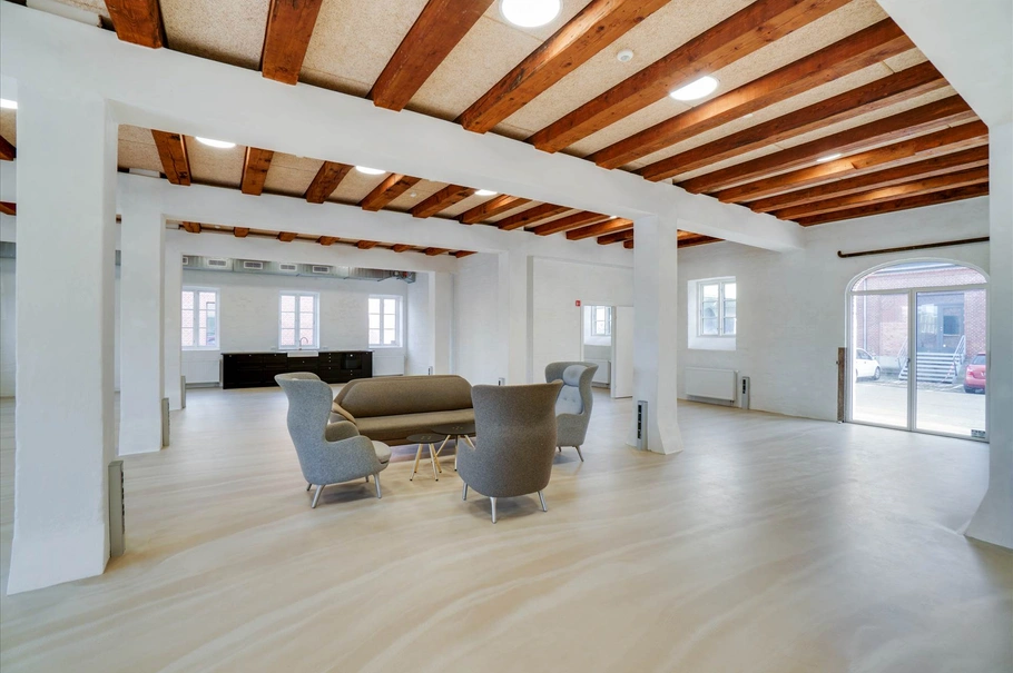 Denne historiske ejendom er opført som pakhus tilbage i 1910, og gennemgribende renoveret i 2019 til nye moderne kontorlokaler med yderst flotte detaljer.