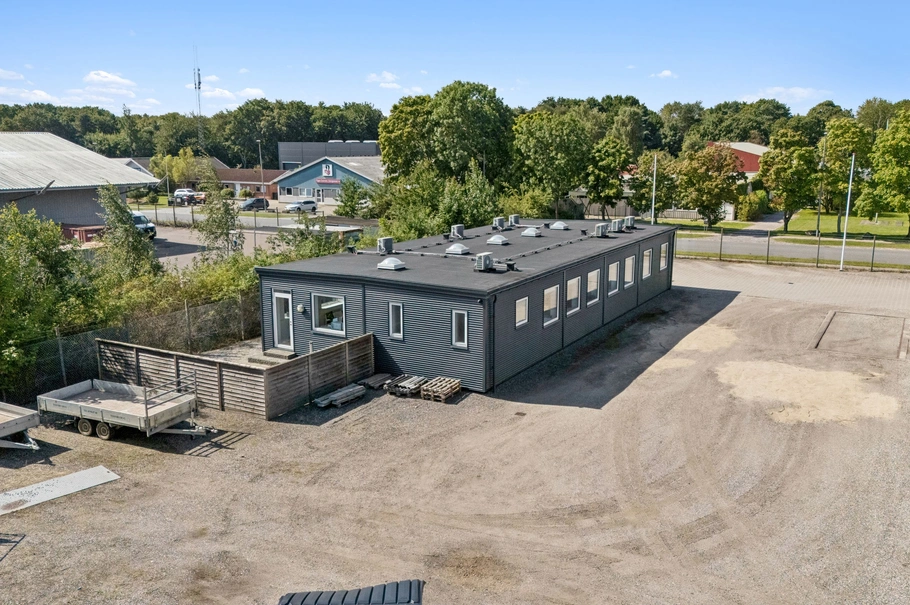Lejemålet har samlet areal på 695 m², hvoraf 195 m² er kontor og resten er lagerhal. Ejendommen er velvedligeholdt, og kontorerne, som er opført i 2016, er opbygget som kontorpavilloner, men fremstår som en reel bygning beklædt for et helhedsudtryk. Kontoret er indrettet med cellekontorer, storrumskontorer, mødelokale, køkken/frokoststue, omklædning med toiletter. Den er opvarmet med fjernvarme og har aircondition installeret.