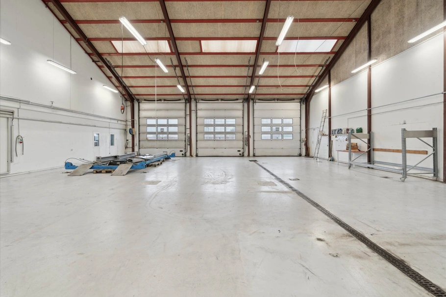 Ved siden af autoværkstedet ligger en rummelig koldhal på ca. 360 m² med støbt betongulv, ideel til opbevaring eller ekstra lagerplads. Hele ejendommen er placeret på en 6.000 m² indhegnet grund, der sikrer gode adgangsforhold og tryghed.