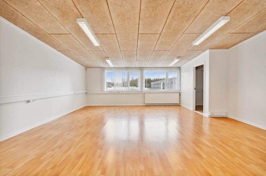 Lejemålet indeholder et kontorareal på 116m² fordelt på hhv. 50m² i stuen og 66m² på 1 sal. Desuden er der 2 toiletsektioner, tekøkken og bad, som deles med de øvrige lejere i indgang 2. Til lejemålet hører 600 m² lager med 4 rulleporte på ca. 3,3 x 4,5m. Højden i hallen er ca. 5,5 m. i siden og ca. 7 m. til kip. Hallen er isoleret og opvarmet og derudover er der et godt ovenlys. Lokalerne er velegnet til mindre erhvervsdrivende, engrosvirksomheder og lettere produktion. Facaderne er konstrueret med trapezplader samt isoleret og indvendig beklædning er med fiberbetonplader. Udenomsareal er befæstet med SF-sten. Der er ligeledes gode parkeringsforhold ved ejendommen.