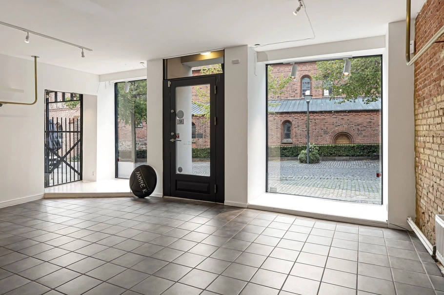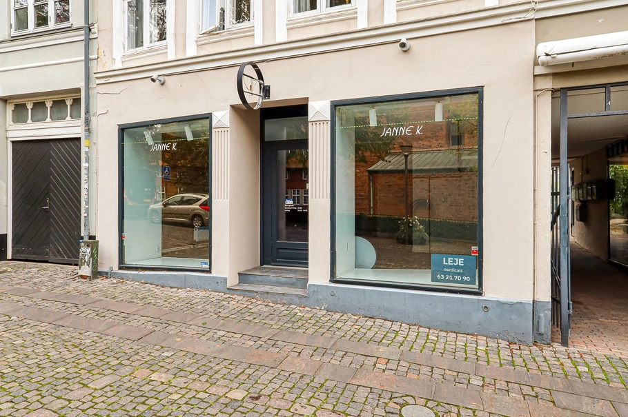 Butikslejemålet giver god mulighed for at præsentere varerne på bedste vis. I et hjørne af butikken er der mindre repos, som er hævet med 1 trin, som med fordel kan bruges til prøverum.